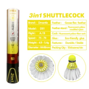 3-in-1 Professional Original Factory Fluorescent Yellow Fiber Cork Class Goose Feather Badminton Shuttlecocks for Indoor