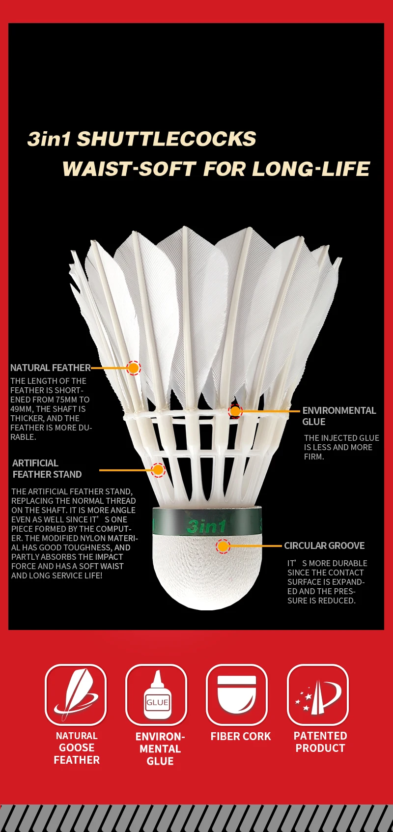 3in1Badminton Shuttlecock Dmantis Brand Model D41 in Goose Feather Shuttle Cock OEM ODM Support