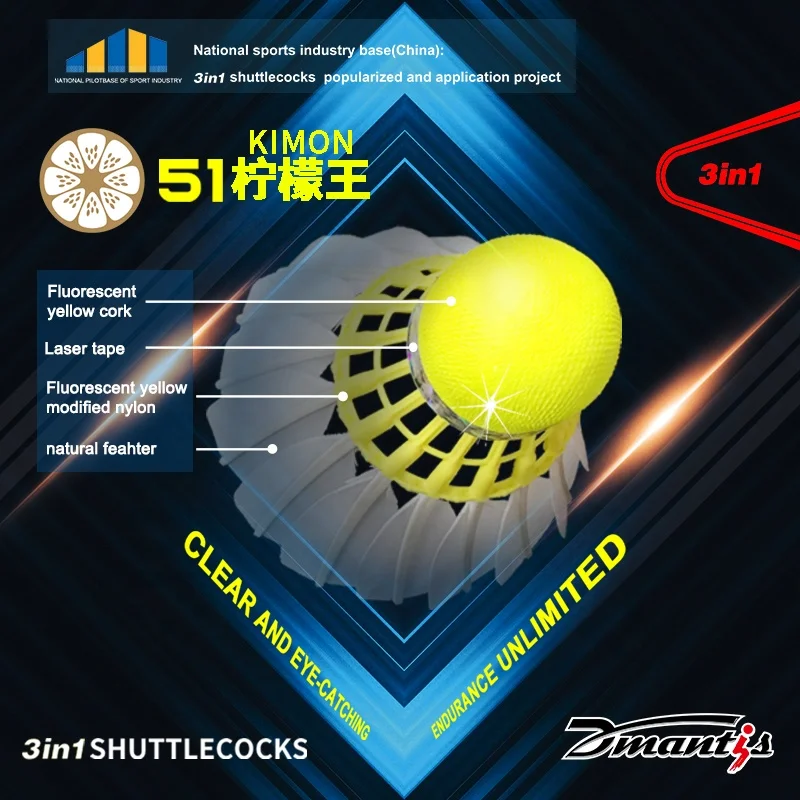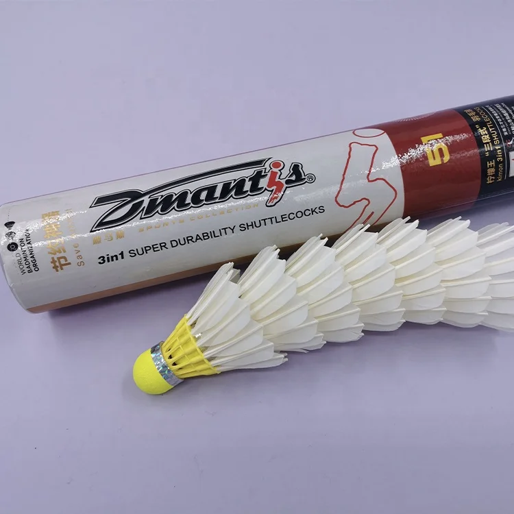 Factory Supply Dmantis 3in1 High Durability Shuttles Model D51 Yellow Cock Goose Feather Shuttlecock Badminton for Training Use