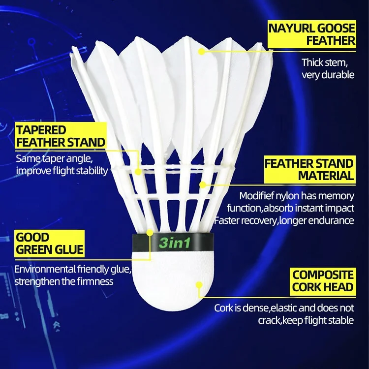 High Quality 3in1 Hybrid Yellow Professional Badminton Goose Feather Shuttlecocks for Training Badmenton Suttlecock