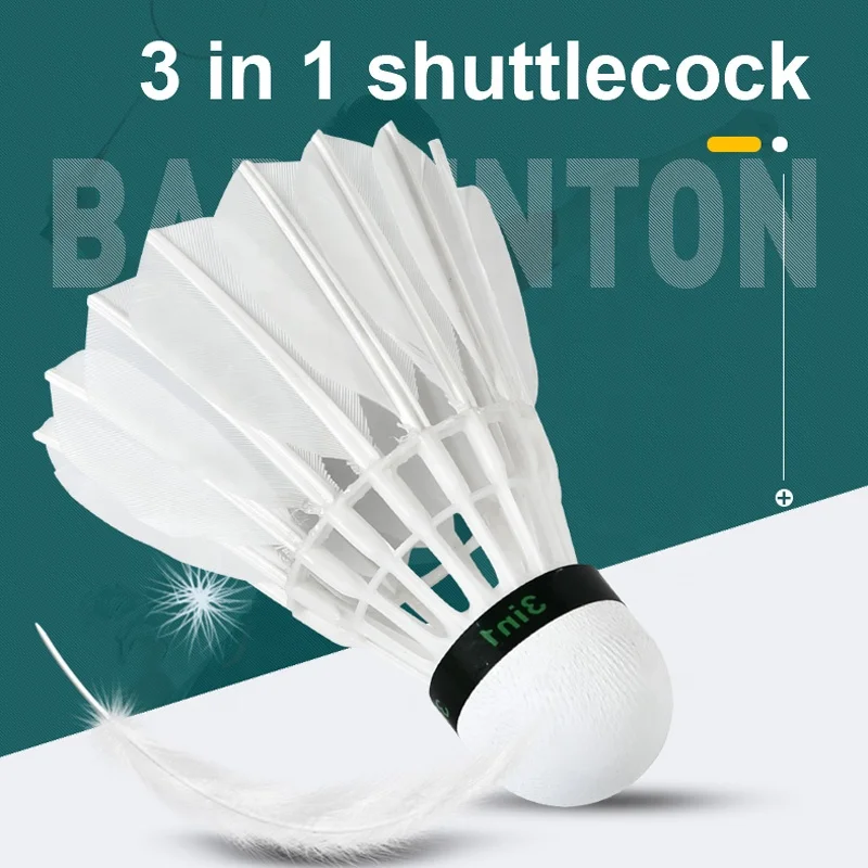 OEM ODM 3in1 Hybrid Badminton Ball Goose Feather Shuttlecock Badminton Shuttlecock with Feather Material