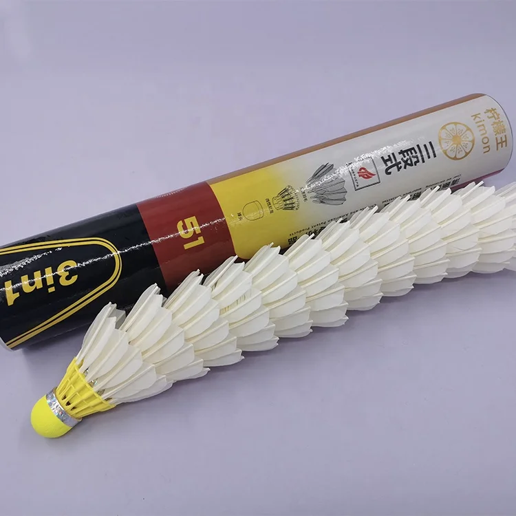 Yellow Natural Cork & Goose Feather 3in1 Training Shuttlecock Durable Hybrid Badminton Feather Ball Class Goose Badminton